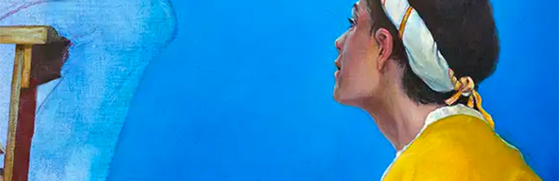Miriam Vlaming, eine junge Malerin mit beeindruckender Ausstellungsvita, bespielt die untere Ebene. Studiert hat sie mit Auszeichnung an der Hochschule für Grafik und Buchkunst Leipzig bei zwei namhaften Vertretern der Neuen Leipziger Schule, bei Neo Rauch und Arno Rink, dessen Meisterschülerin sie war.