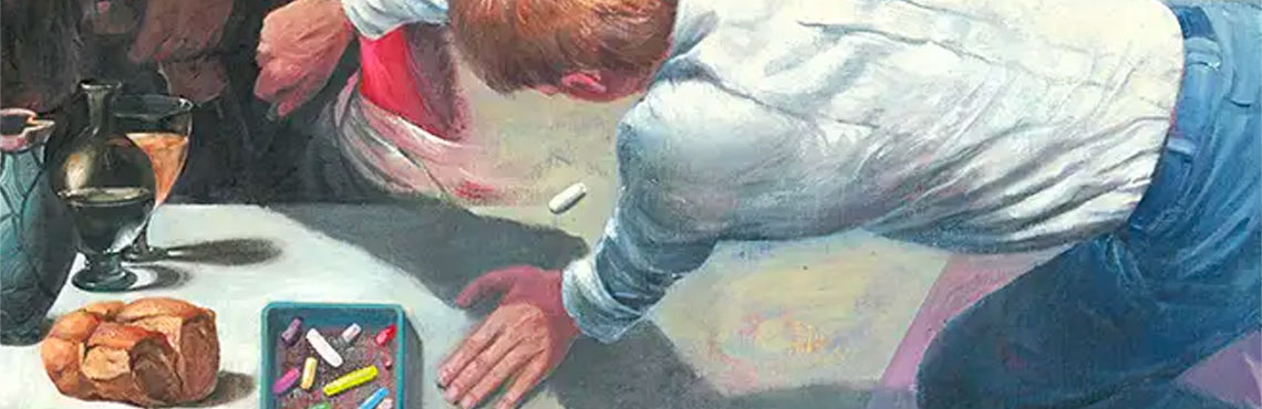Leo Leonhard, 1939 in Leipzig geboren und 2011 in Bickenbach bei Darmstadt gestorben, war neben seinem Beruf als Gymnasiallehrer und Professor für Zeichnen an der Fachhochschule Mainz freier Maler und Grafiker. Heute beinahe vergessen, umfasst sein Werk Zeichnung, Grafik und zum Teil großformatige Ölmalerei. In seinen figurativen Ölbildern huldigt er alten Meistern wie Caravaggio, Mantegna oder Tiepolo. Aber er greift auch aktuelle gesellschaftliche oder mythische Themen auf. Der Raum ist dabei häufig ein gestalterisches Element seiner Bildfindung.